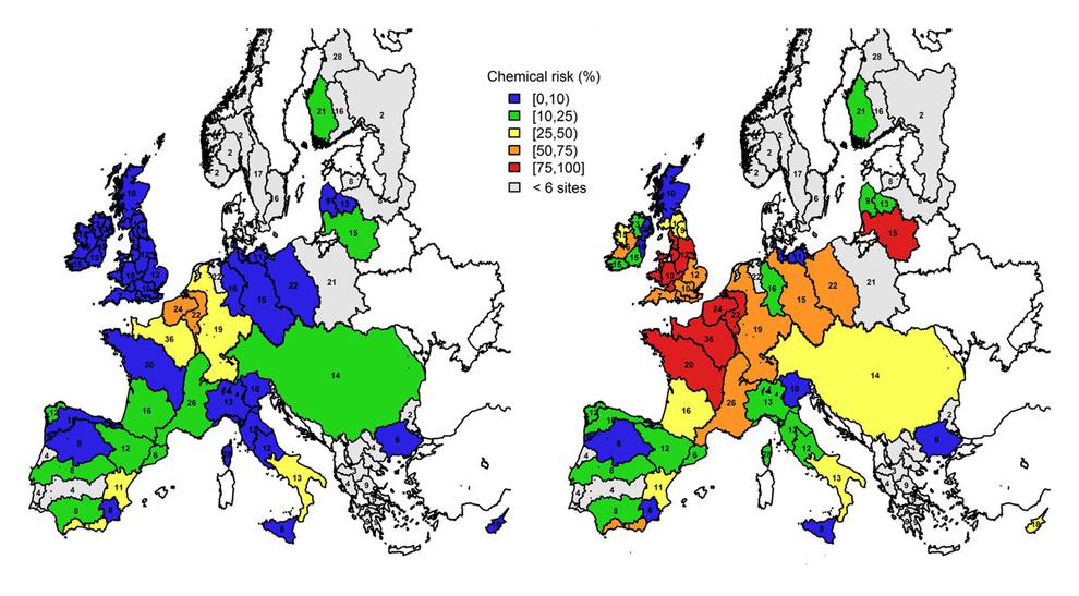 Para realizar el estudio los científicos examinaron datos sobre calidad del agua de más de 4.000 puntos de observación de los 28 países de la UE y cuantificaron el riesgo que plantean para los peces, los invertebrados y las algas en cada una de las zonas.
