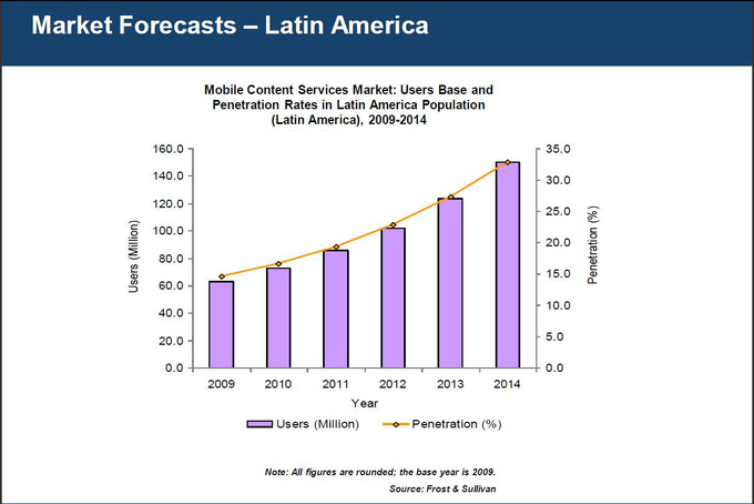 A pesar de lo que pueda parecer, el mercado de contenidos móviles está comenzando su expansión y se prevé un fuerte crecimiento en los próximos años en la región, con la expectativa de llegar a los 150,4 millones de usuarios en 2014. El lanzamiento de operadores móviles con aplicaciones almacenadas contribuirá a impulsar la demanda de este tipo de servicios.