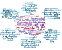 Nubes de palabras más comunes en las actualizaciones de Facebook entre mayores de 30 años. Fuente: UPenn