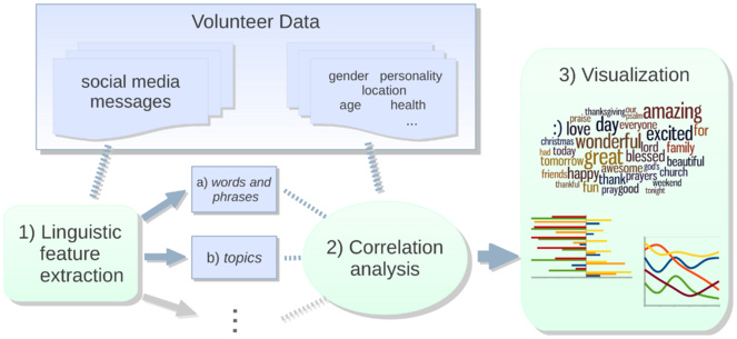 Este volumen de información es fundamental para poder aplicar la técnica específica utilizada por el equipo, conocida como Análisis del lenguaje diferencial o DLA. Con ella aislaron palabras y frases agrupadas en torno a las características proporcionadas por los cuestionarios de los voluntarios: edad, sexo y rasgos personales siguiendo el Modelo de los Cinco Grandes –una teoría que se utiliza en psicología para analizar la personalidad como la composición de cinco factores: O (Openness o apertura a nuevas experiencias), C (Conscientiousness o responsabilidad), E (Extraversión o extroversión), A (Agreeableness o amabilidad) y N (Neuroticism o inestabilidad emocional).