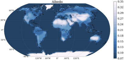 Mapa del albedo de la Tierra, es decir, el ratio de luz reflejada respecto a la luz recibida (las zonas más claras son las que más albedo tienen). Fuente: Nature.