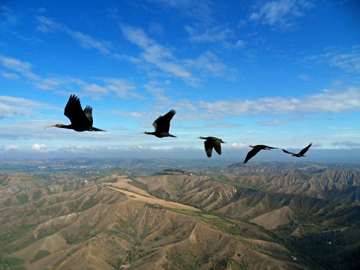 Un equipo internacional de investigadores ha observado el vuelo de un grupo de catorce ibis eremitas (Geronticus eremita) migratorias volando en formación en ‘V’.