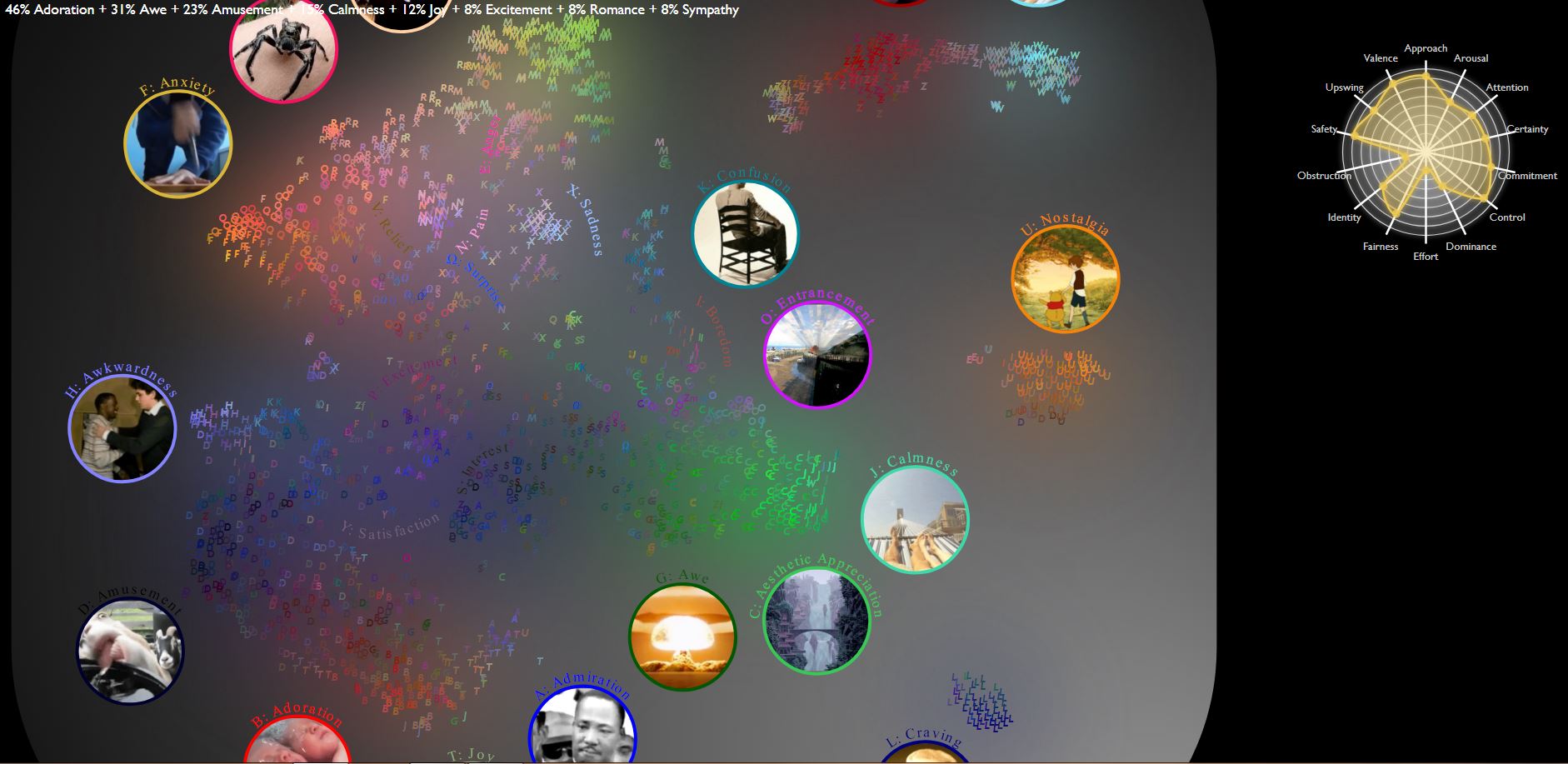 Los investigadores usaron nuevos modelos estadísticos para analizar las respuestas de los participantes en el experimento y, además de identificar las 27 categorías emocionales, crearon un mapa interactivo multidimensional para ilustrar la forma en las que las emociones están conectadas.