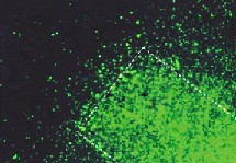 En un experimento reciente, Hofmann inyectó nanopartículas de hierro acopladas a un gen modificado que sintetizaba una proteína verde fluorescente en el interior de la articulación de una oveja.