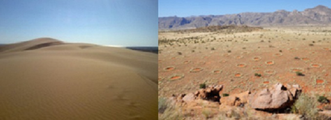 Por otra parte, existen los llamados "anillos de hadas", que son unas extrañas formaciones que aparecen en el suelo del desierto de Namibia. Se trata de decenas de miles de calvas circulares, de uno a 20 metros de diámetro y rodeadas por vegetación en forma de “corona” verde.