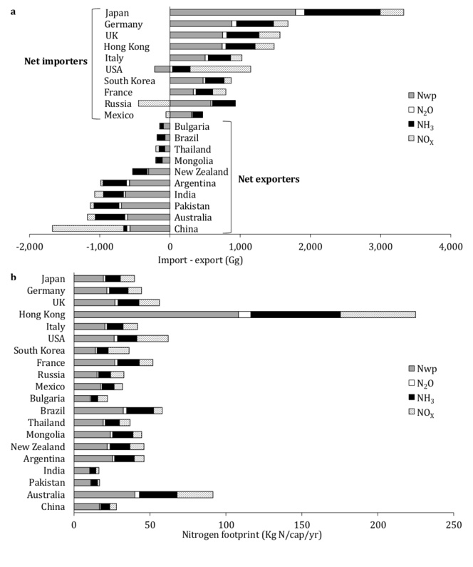 Los países en desarrollo, informa la universidad en una nota de prensa, tienden a producir grandes cantidades de emisiones de nitrógeno por sus exportaciones de alimentos, textiles y prendas de vestir. Australia es uno de los pocos países ricos, junto con Nueva Zelanda y Argentina, que es exportador neto de nitrógeno, debido a su importante industria agrícola y ganadera.