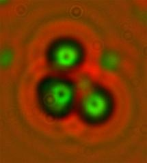 Al final del experimento, examinaron el plástico con un microscopio, y descubrieron patrones de “huellas triples”, diminutas aglomeraciones de tres agujeros adyacentes que parecían dividirse a partir de un solo punto.