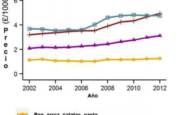 El precio de los alimentos saludables ha subido más que el de los menos sanos en el Reino Unido en la última década. Según un estudio, el precio de 1.000 kilocalorías de alimentos saludables ha subido de 7,18 euros a 9,53, es decir, 2,3 euros. Esa misma cantidad de energía en alimentos menos sanos cuesta 3,18 euros, frente a los 2,25 de hace diez años, es decir, 0,92 euros más.