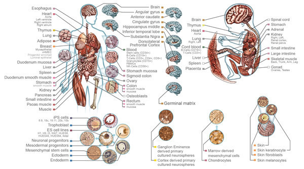 Investigadores financiados por los Institutos Nacionales de Salud estadounidenses han cartografiado los epigenomas de más de 100 tipos de células y tejidos, proporcionando una nueva perspectiva sobre qué partes del genoma se utilizan para hacer cada tipo particular de célula. Los datos están disponibles para la comunidad biomédica.
