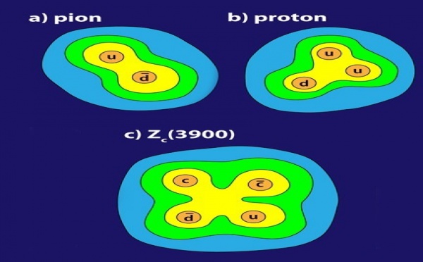 Científicos de un acelerador de partículas de Japón, por un lado, y de uno de China, por otro, han coincidido en detectar lo que podría ser una nueva partícula , llamada Zc (3900), formada por cuatro quarks, algo nunca visto hasta el momento. Todavía hay que confirmar que se trata de una sola partícula y no de dos en interacción, cada una formada por dos quarks.