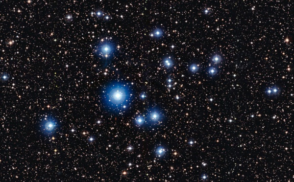 El instrumento Wide Field Imager del Observatorio La Silla de ESO, en Chile, ha captado imágenes de un grupo de estrellas de reciente formación, situadas en la constelación austral de Vela (La Vela), a 1.500 años luz de nuestro planeta. Estos cuerpos celestes son estrellas calientes que brillan en tonos azulados, lo que constituye un claro indicador de su juventud.