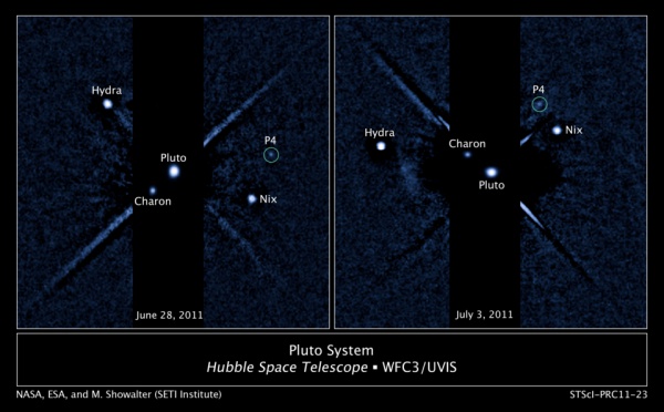 Científicos de la NASA han hallado, gracias al Telescopio Espacial Hubble, una quinta luna orbitando alrededor de Plutón. La existencia de las otras cuatro fue registrada en 1978, 2006 y 2011. El hallazgo proporciona nuevas claves para desentrañar la formación y evolución del planeta enano y sus satélites, y también ayudará a establecer el peligro potencial de choque con restos orbitales de la misión New Horizons de la NASA, que se espera alcance el sistema plutoniano en 2015.
