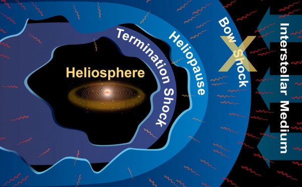 Nuevas observaciones de las fronteras del sistema solar han determinado que el Sol se mueve a través del espacio a una velocidad inferior a lo estimado hasta ahora, impidiéndole formar el arco de choque que supuestamente marcaba la frontera entre nuestro sistema solar y el medio interestelar. El descubrimiento sugiere que el límite de protección que separa nuestro sistema solar del resto de la galaxia carece de ese arco de choque, lo que podría tener implicaciones sobre cuánta radiación (en forma de rayos cósmicos galácticos) entra a nuestro sistema solar