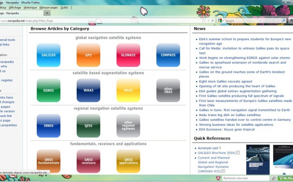 El campo de la navegación por satélite evoluciona rápidamente, a una velocidad imposible de captar por los libros de texto. Por esta razón, la Agencia Espacial Europea (ESA) ha desarrollado su propia fuente de información en formato wiki. Se trata de “Navipedia”, la primera wiki técnica actualizada sobre el tema y abierta al público.