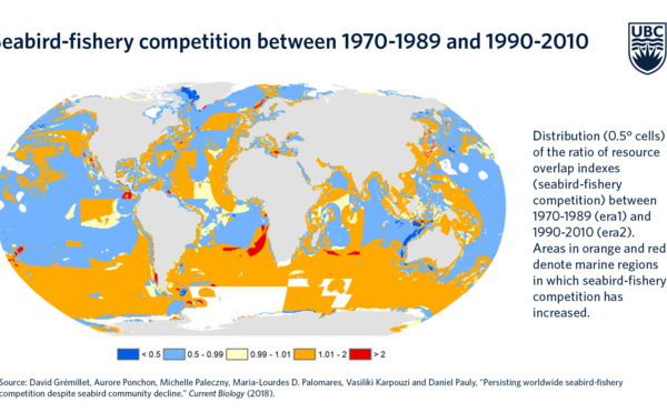 Las aves marinas se están quedando sin alimentos debido a la sobreexplotación pesquera, que consume 65 millones de toneladas por año amenazando especialmente a las que se nutren de calamares, krill antártico y pequeños peces de agua dulce como arenques y sardinas.