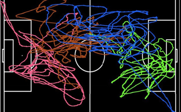 Los futbolistas se comportan en el estadio como lo hacen las partículas dentro de un fluido turbulento, ha descubierto un estudio. Sus movimientos siguen los mismos patrones que las partículas de agua en el flujo de un río, inicialmente caóticas pero luego con giros de hasta 120º. El espacio rectangular es la clave del patrón de movimiento en ambos casos.