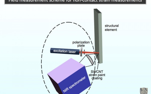 Ingenieros e investigadores de Rice University, en Estados Unidos, han creado una pintura a base de nanotubos de carbono que es capaz de detectar deformaciones y tensiones en construcciones y estructuras varias, pudiendo aplicarse para prevenir accidentes y fallas en edificios, puentes y aviones, por ejemplo. La información que aporta la pintura se obtiene sin tocar la estructura, y puede leerse mediante un espectrómetro infrarrojo portátil.