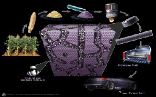 Ingenieros de la universidad Missouri-Columbia y del Midwest Research Institute (en Estados Unidos) han conseguido un récord para los sistemas de almacenaje de gas natural que podría fomentar el mercado a gran escala de los automóviles ecológicos. Utilizando los desechos de las cosechas de maíz, han creado unas briquetas o conglomerados de carbono de estructura fractal capaces de almacenar gas natural a una densidad sin precedentes, de 180 veces su propio volumen, y a una presión mucho menor de lo normal en los depósitos de gas. Esto supone un gran logro: los depósitos para este combustible podrían asimilarse a los de gasolina. Así, se evitaría el mayor problema de este tipo de fuente energética para vehículos: el gran espacio que hasta la fecha ocupa su almacenamiento.