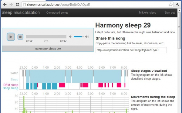 Un equipo de investigadores de la Universidad de Helsinki ha desarrollado un software que, a partir del registro por sensores de datos del sueño –como los estadios del sueño o la frecuencia cardiaca- genera música de manera automática. El sistema ha sido creado con el objetivo de percibir y experimentar datos procedentes de mediciones del sueño y ayudar a los usuarios a comprender y a analizar sus patrones de sueño, e incluso a mejorar su descanso.
