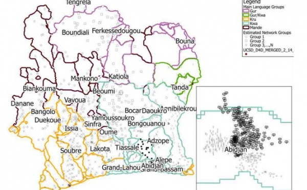 Utilizando datos de conexiones por telefonía móvil, un grupo de investigadores de la Universidad de California ha demostrado que se pueden analizar las estructuras sociales de un país, como Costa de Marfil, según los distintos idiomas que se hablan en él (hasta 60). Este tipo de análisis podrían usarse también para estudiar resultados electorales según las etnias, y prevenir conflictos a gran escala.