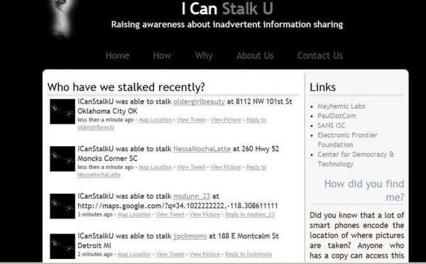 Las cámaras de los smartphones que contienen la tecnología GPS de localización en el interior ya están equipadas con el hardware especializado para agregar automáticamente la información de geolocalización de las fotos, en el momento en que éstas se toman. Por esta razón, los propietarios de teléfonos inteligentes están asumiendo el riesgo de ofrecer información acerca de donde van todos los días, algo que denuncia el sitio “I Can Stalk U”.
