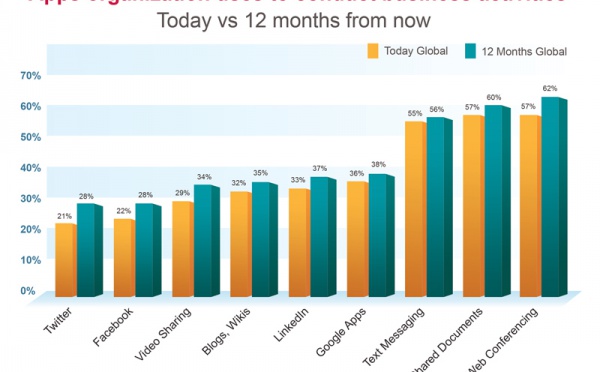 Según un estudio realizado por IDC y patrocinado por Unisys, existe una gran diferencia entre entre lo que están haciendo los iWorkers (trabajadores de la información) con las tecnologías de consumo en la empresa y lo que los líderes de TI creen que está ocurriendo en sus organizaciones. En tres años el número de iWorkers en empresas, que utilizarán telefonía inteligente y accederán a redes sociales para hacer negocio, se duplicará. En cambio, los jefes no reconocen la integración de las tecnologías de consumo en su empresa.