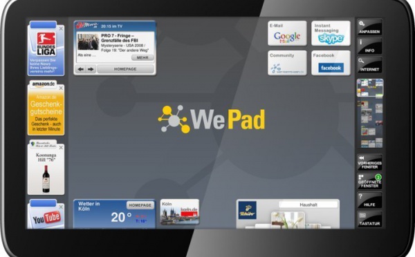 La empresa alemana Neofonie lanza WePad, un nuevo ordenador tablet que incorpora, a diferencia del iPad, una webcam en su parte delantera de 1,3 megapíxeles, un lector de tarjetas, un módem UMTS, y compatibilidad con Adobe AIR y Flash, y con todos los formatos estándar de e-books. Este dispositivo tecnológico cuenta con una batería de unas 6 horas de duración e incorpora además un sensor de luz ambiental, un acelerómetro, altavoces estereo, salida de audio y la posibilidad de acoplarle un GPS, así como Bluethooth y Wi-Fi.