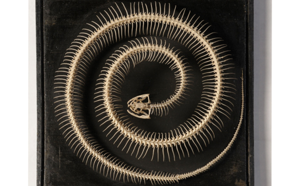 El artista Miguel Ángel Blanco ha diseñado una exposición en el Museo del Prado que aúna 25 grandes obras del museo con 22 piezas del Museo de Ciencias Naturales del CSIC. Entre ellas hay minerales, animales naturalizados, esqueletos o incluso meteoritos, que de alguna manera complementan a las obras artísticas. El esqueleto de una serpiente, acompañando al 'Adán y Eva' de Durero, es uno de los ejemplos.