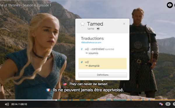 Un software francés permite aprender inglés mientras ves tu programa o película favorita en versión original. Ya sea en streaming o desde el disco duro, la herramienta incorpora los subtítulos al vídeo de forma inteligente, combinando partes en inglés con otras en la lengua nativa y aumentando el porcentaje en inglés a medida que la comprensión del espectador crece.