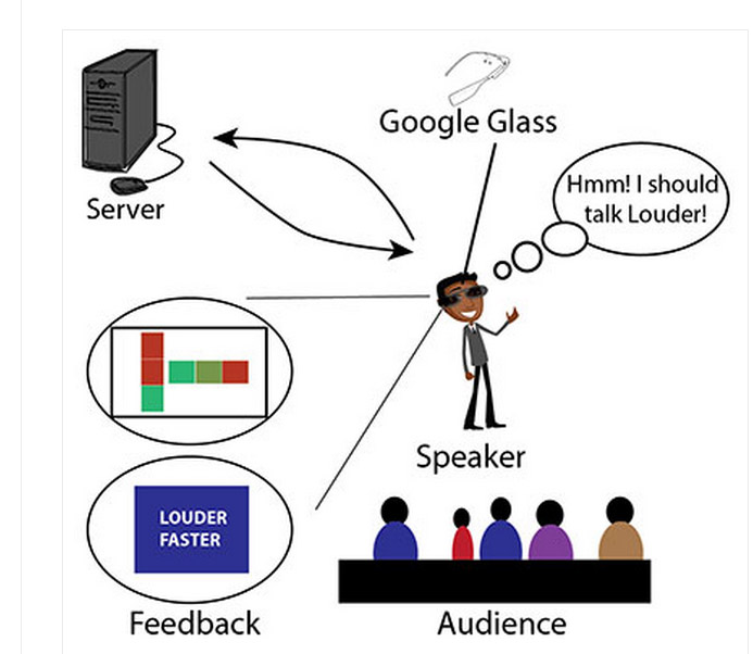 Hablar en público es una fobia bastante común, capaz de bloquear a una persona y causarle una ansiedad que le impida comunicarse con eficacia. Como cualquier otra fobia requiere de ayuda psicológica, aunque también se puede combatir con cursos de formación o incluso libros de autoayuda. Ahora, investigadores del Grupo de Interacción Hombre-Máquina de la Universidad de Rochester, en Estados Unidos, han desarrollado una interfaz de usuario para gafas inteligentes que ofrece información en tiempo real sobre la modulación de la voz, es decir, detalles sobre el tono, el ritmo o la inflexión, pero de forma mínimamente molesta.