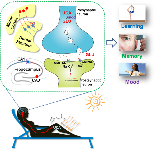 Utilizando técnicas interdisciplinarias, esta investigación descubrió que la exposición moderada a los rayos UV eleva el ácido urocánico en sangre (UCA), que luego se convierte en glutamato (GLU) en las células cerebrales (neuronas).
