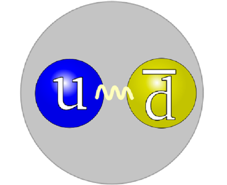 En la transmisión de la interacción nuclear fuerte, las protagonistas son unas partículas llamadas piones, que están hechas de un quark y su antipartícula, un antiquark (que tiene la misma masa y el mismo espín que el quark, pero distinta carga eléctrica).