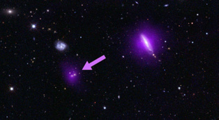 Los rayos X emitidos por los agujeros negros, en color violeta. Fuente: NASA/JPL-Caltech.