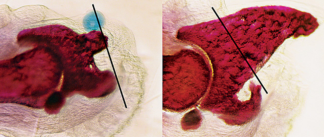 Un ratón puede hacer crecer un dígito amputado. La barra de negro indica la línea de la amputación. Muneoka encontró que el tratamiento de esa zona de la amputación, con las proteínas morfogenéticas óseas, permite a un ratón producir una punta d