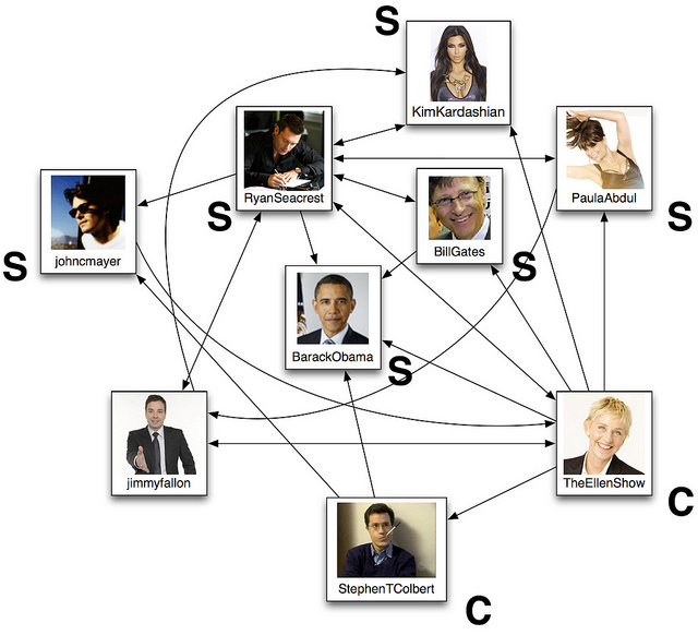 Para conseguirlo, han utilizado una de las propiedades de las redes sociales que también se observa en Twitter y que se conoce como la “paradoja de la amistad”: tus amigos tienen de media más amigos que tú. En el caso de Twitter, tras analizar, en 2009, una muestra de datos de 40 millones de usuarios y 1500 millones de seguidores (followers), los investigadores han comprobado que cada usuario tenía un promedio de 25 seguidores, mientras que estos tenían, a su vez, 422 de media, es decir, casi veinte veces más.
