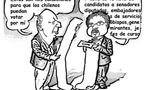 Con esto quiero decir que la adjunta caricatura permite mostrar, rápido, cuales son las principales carácterísticas de uno de los presidenciables vigentes. Se trata del ex presidente Ricardo Lagos (Richard Lakes para sus amigos), quien aparece en acción junto con su hijo Ricardo Lagos jr., también candidato a algún cargo en el próximo gobierno ... si es que vuelve a ser de la Concertación Democrática.