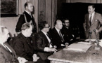 Allende con cardenal Raúl Silva, Felipe Herrera y el autor. De pie edecán naval Arturo Araya y Fernando Castillo Velasco
