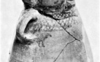 a) En esta placa de la diosa Ninhursag, procedente de la antigua Girsu, aparece un fiel regando un macetero del que surge ya una planta, todo ante la diosa. La composición ensalza el macetero, situado en el centro de la imagen. Se da la circunstancia de que esta diosa es considerada la “Madre”. Fechada en el 2500 a. C. La imagen en este enlace