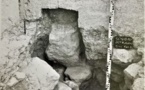 Además, las tumbas estuvieron indicadas por estelas funerarias, una de las cuales se mantuvo en pie a lo largo de los siglos. De hecho, el edificio del Westkomplex conocido como Südbau, construido hacia el año 500 a. C. fue construido directamente sobre las tumbas, y, en atención a ello, una de sus paredes se ajustó para respetar la antigua estela, como puede verse en la fotografía que presenta este post.