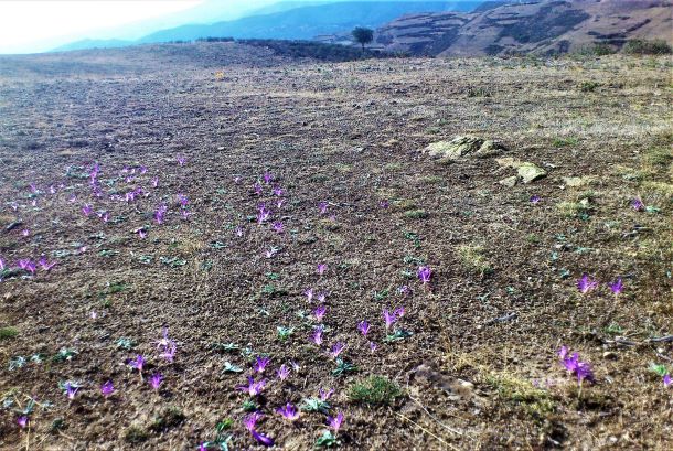 Planta de azafrán silvestre surgiendo en primavera. Fotografía del autor.