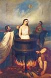 Juan arrojado en una caldera de aceite hirviente Los capítulos 8-11 de los Hechos de Juan escritos por Prócoro se han conservado solamente en su versión latina. Tratan del viaje de Juan a Roma para ser juzgado por orden del emperador Domiciano. Si Juan persistía en sus errores, sería justamente castigado. Pero Juan manifestaba su disposición a morir antes que traicionar a su Maestro, lo que disgustó al procónsul hasta el paroxismo porque consideraba la postura de Juan como delito de lesa majestad. A una carta anterior de Domiciano, en la que expresaba su criterio de hacer cambiar a Juan de su actitud, el procónsul de Éfeso envió una relación a Roma sobre la situación del prisionero cristiano. Informaba que Juan predicaba a Cristo crucificado, del que afirmaba que era Dios e Hijo de Dios. Como apóstol de Jesús perseguía el culto de los dioses inmortales y destruía sus templos. Ni halagos ni amenazas habían conseguido hacerle cambiar de actitud. Recurría el procónsul a la majestad del emperador para que le manifestara lo que debía hacerse con aquel rebelde recalcitrante. Cuando el emperador leyó los informes sobre Juan, dio órdenes para que fuera encadenado y enviado a Roma. Domiciano no quiso ni siquiera ver al Apóstol, pero ordenó que fuera conducido hasta la Puerta Latina y arrojado en una caldera de aceite hirviente. En ese lugar preciso de la ciudad de Roma se levantó la iglesia de San Juan Ante Portam Latinam para conmemorar el suceso avalado por una tradición conocida ya por Tertuliano y por San Jerónimo. Tertuliano refiere el suceso en De praescriptione haereticorum 36, hacia el año 220. Por su parte, Jerónimo, en su Comm. in Mt 20,23, conoce la leyenda y asegura que Juan salió de la caldera como un atleta ungido para el combate. Así suena el relato del acontecimiento en el texto latino del Apócrifo: “Se reunió el senado romano junto con el procónsul y el pueblo romano delante de la puerta Latina, y ordenaron que llevaran una caldera llena de aceite hirviente en la que arrojaron al bienaventurado apóstol Juan, desnudo, azotado y arrastrado ignominiosamente, el día anterior a las nonas de mayo. En efecto, el día 6 de mayo celebra la Iglesia la festividad de san Juan ante portam Latinam. Pero por la protección de nuestro Señor, salió de la caldera de aceite en ebullición e hirviente como un fortísimo atleta, no quemado, sino como ungido, ileso e intacto. Y por la gracia salvadora y refrigerante del Señor que lo amó, apareció tan ileso y libre de daño cuanto permaneció íntegro e inmune de la corrupción de la carne” (HcJnPr 11,1). El autor del Apócrifo relaciona los triunfos de Pedro y Juan en Roma. Y lo que fue la Puerta Vaticana en el caso de Pedro, lo fue la Puerta Latina en el de Juan. El suceso de la caldera de aceite hirviente fue tan clamoroso que el procónsul hubiera querido dar a Juan la libertad, pero tuvo miedo de la ira del emperador. El mismo Domiciano ordenó que Juan no fuera atormentado más, sino que ya pensaría él lo que convenía hacer con el personaje. Y lo que pensó fue desterrar a Juan a la isla de Patmos. Una visión avanzó a Juan la noticia del destierro, en el que tendría que superar variadas pruebas, pero lograría también sembrar la buena semilla. Los habitantes de Éfeso se dirigieron al emperador para avisarle de los peligros que temían de aquellos forasteros. Aunque el texto griego habla de Trajano, no faltan códices que se refieren a Adriano. La versión latina, lo mismo que el Pseudo Abdías, piensan en Domiciano en consonancia con la tradición más aceptada. Pues contaban que aquellos forasteros iban acompañados de fama de magos y de enemigos de la religión romana, cuyos templos habían incluso destruido. Trajano les respondió de acuerdo con su carácter de justiciero y piadoso. Enumeraba tres faltas graves contra el orden establecido: “En primer lugar, y esta es su maldad más importante, ultrajan a los dioses; en segundo lugar, porque menosprecian las leyes y luego porque no respetan al emperador” (HchJnPr 13,2). En consecuencia, ordenaba el emperador que fueran desterrados a la isla de Patmos. Allí encontrarían “los apóstatas Juan y Prócoro” pesadumbres que los harían reflexionar, acordarse de los dioses y recobrar la sensatez. Los funcionarios reales arrestaron a Juan y a Prócoro; luego pusieron en cadenas a Juan de forma desconsiderada. Lo consideraban como mago y embaucador peligroso. De sí mismo dice Prócoro que “no me ataron, sino que me dieron muchos golpes y me dedicaron duras palabras” (HchJnPr 14,1). Saludos cordiales. Gonzalo del Cerro