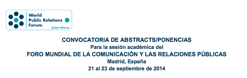 El VIII Foro Mundial de las Relaciones Públicas, que se celebrará el 22 y 23 de septiembre de 2014 en Madrid (España), organizado por la Asociación Española de Directivos de Comunicación (Dircom), girará en torno a la “Comunicación con conciencia”. En este contexto, la Sesión Académica, previsto para el 21 de Septiembre, la jornada previa a la inauguración del WPRF, tiene por objeto tratar la necesidad que tienen los comunicadores de hoy en día, de ser conscientes de cómo la comunicación está transformando la naturaleza de la sociedad, y de cómo la gente percibe y practica la comunicación. Esto exige una comunicación con consciencia: plena percepción y responsabilidad en la toma de decisiones en su comunicación y en la acción de las organizaciones. CONVOCATORIA DE ABSTRACTS/PONENCIAS La Sesión Académica reunirá a investigadores, profesores, estudiantes y líderes de opinión académicos de todo el mundo, a quiénes invitamos a enviar abstracts de mil quinientas palabras (nueve mil caracteres), ya sea en inglés o en español, relacionados con el tema principal “Comunicación con conciencia y consciencia: auto percepción y responsabilidad”. Todos los abstracts recibidos serán incluidos en las actas públicas de la Sesión Académica. PARA ENVIAR SU ABSTRACT PULSE AQUI 2 |
