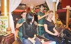 FITUR 2012 dos vistantes se recuperan de las horas de trabajo en la feria mediante masaje tai en el stand de Tailandia.