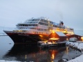Volvimos al hotel. A las seis nos vinieron a recoger y nos llevaron al barco. El MS “Trollfjord” es uno de los más jóvenes de la flota de Hurtigruten. Todo es nuevo y confortable con ese gusto por el diseño y el confort tan escandinavo. El buffet de bienvenida nos sorprendió por su variedad y calidad. Una especie de cena de Navidad anticipada. Eran pasadas las 01.00 cuando “el expreso del litoral” finalmente zarpó. El viaje había comenzado.