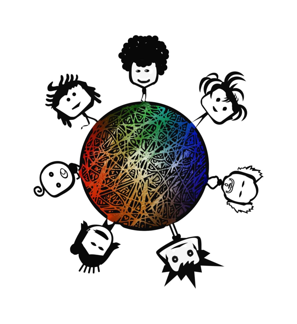 El concepto visual articulador del logotipo es un planeta/universo con múltiples texturas y colores con habitantes en los que se destacan sus diversos peinados.