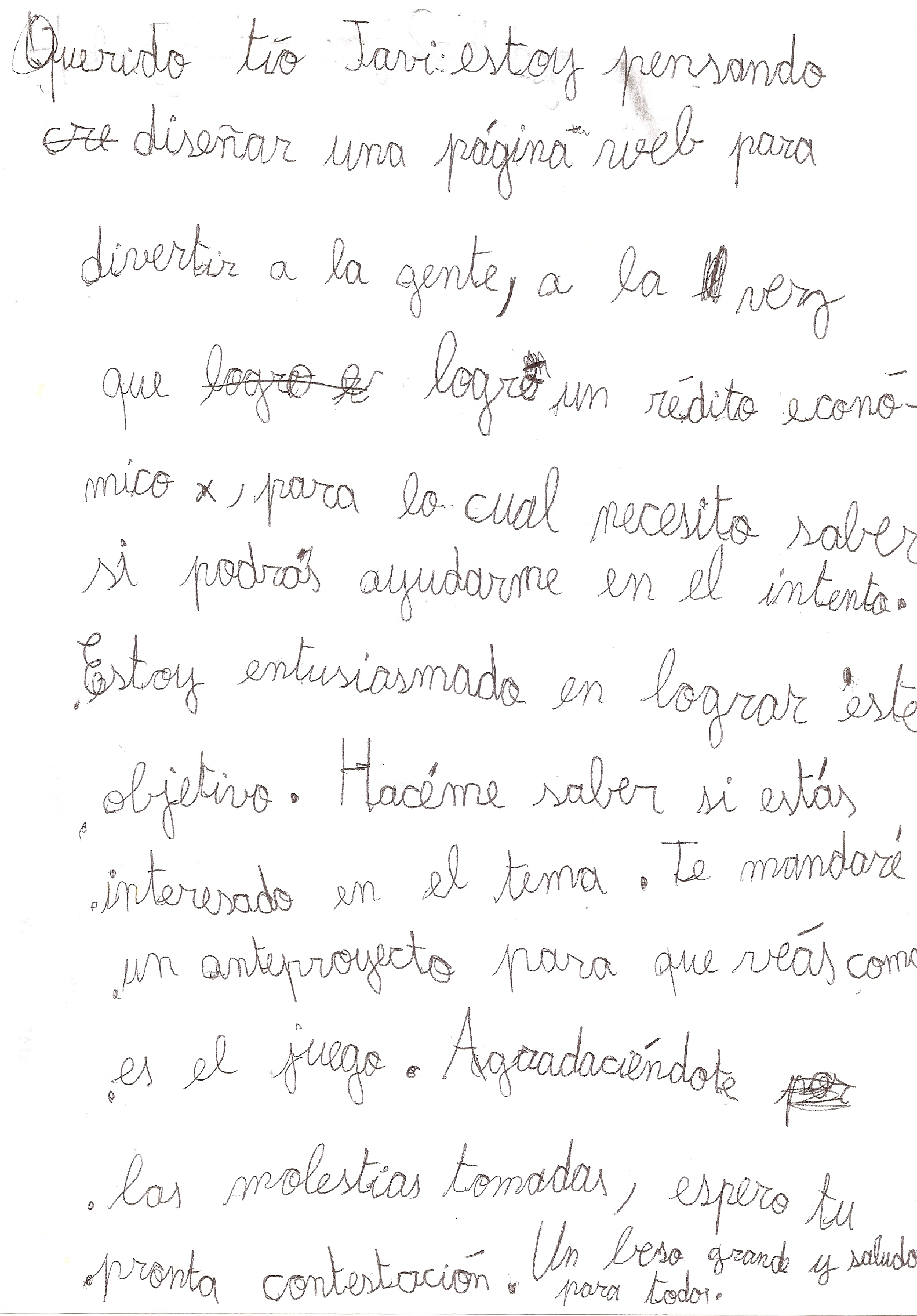 Pero también creo que siempre existe la posibilidad de abrir espacios educativos a visiones menos rígidas y encorsetadas. A veces sólo basta con no ser un obstáculo y 'escuchar' a los alumn@s. Como ejemplo, aquí una pequeña carta que escribió mi hijo cuando tenía diez años. Me hablaba de 'su idea' de hacer 'un negocio'. Escuché con mucha atención sus ideas y le sugerí que le escribiera a su tío para que le ayudara en su 'emprendimiento'. Pasados los años, los dos nos reímos de aquel 'primer' ejercicio, Sobre todo por su intención maravillosa de 'divertir a la gente'.