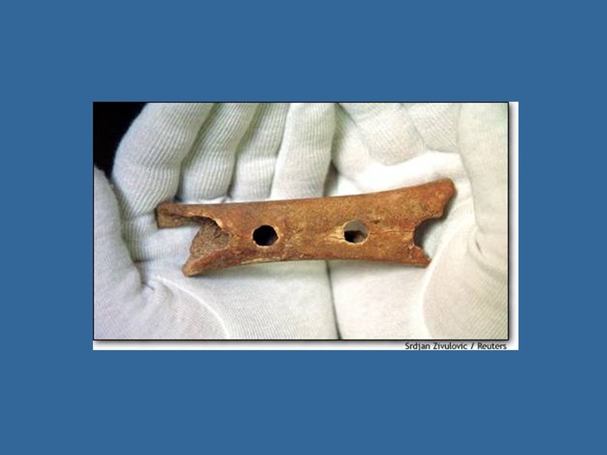 Esta opinión parece exagerada. Sabemos que nuestra especie, el Homo sapiens, hizo su aparición en la Tierra hace unos 200.000 años, pero que la explosión cultural que, probablemente llevó al lenguaje, a la aparición del arte y la religión, tuvo lugar hace unos 50.000 años. Y la hipótesis que hoy se maneja para explicar este retardo de 150.000 años en la aparición de esa explosión cultural es que fue motivada por una mutación. Las estrechas conexiones de la música con el lenguaje nos hacen pensar que muy probablemente su aparición en el ser humano es más reciente y dentro del período de existencia de nuestra propia especie. A favor de esta opinión estaría el hecho de que los registros arqueológicos indican que los instrumentos musicales hacen su aparición con el Homo sapiens.