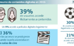 España es uno de los países donde se consume más contenido audiovisual pirata. El fútbol, la Fórmula 1, el Motociclismo y las series, son los contenidos más pirateados. Según el último estudio del Observatorio de la piratería y hábitos de consumo de contenidos digitales 2016, durante el pasado año se accedieron de manera ilegal a casi 800 millones de películas, a casi mil millones de capítulos de series y a 122 millones de partidos de fútbol. En la mayoría de los casos, se trata de contenidos de actualidad, como películas todavía en cartelera (28%) o series en periodo de emisión (39%). Ejemplo de ello es Juego de Tronos, la aclamada serie la serie producida por HBO, y de emisión en la plataforma televisiva de Telefónica , Movistar+ , que fue pirateada en un 70% con respecto al total de la audiencia en España. Además, el cine es el contenido más pirateado, dado que el 32% de los usuarios de internet ha accedido a una película de manera ilegal. Le siguen las series (27% de los usuarios) y el fútbol (10%).