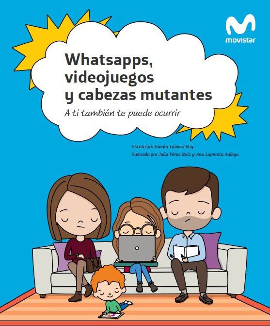 elefónica ha publicado hoy, Día de la Alfabetización, en su plataforma Dialogando, el cuento infantil “Whatsapps, videojuegos y cabezas mutantes ”, dirigido tanto a los niños de entre 4 y 8 años como a sus padres y profesores, para difundir las buenas prácticas entre todos ellos y el uso responsable de los dispositivos tecnológicos, como tablets y teléfonos móviles, entre otros. El relato recrea la historia de Sara y Leo, dos hermanos que dedican demasiado tiempo a los dispositivos digitales, hasta que un día descubren que sus cabezas se han convertido en una tableta táctil y en un ordenador portátil. Junto a su adolescente canguro, los dos niños van a tener que recordar las normas y límites que un día les pusieron sus padres para hacer que sus cabezas vuelvan a tener un aspecto humano.