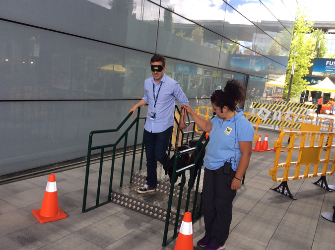 En la experiencia participaron algunos directivos y empleados de la compañía que con los ojos vendados se dejaron guiar por estos perros a lo largo de un circuito que integraba diversos obstáculos, escalones, pasos de cebra, bordillos etc.